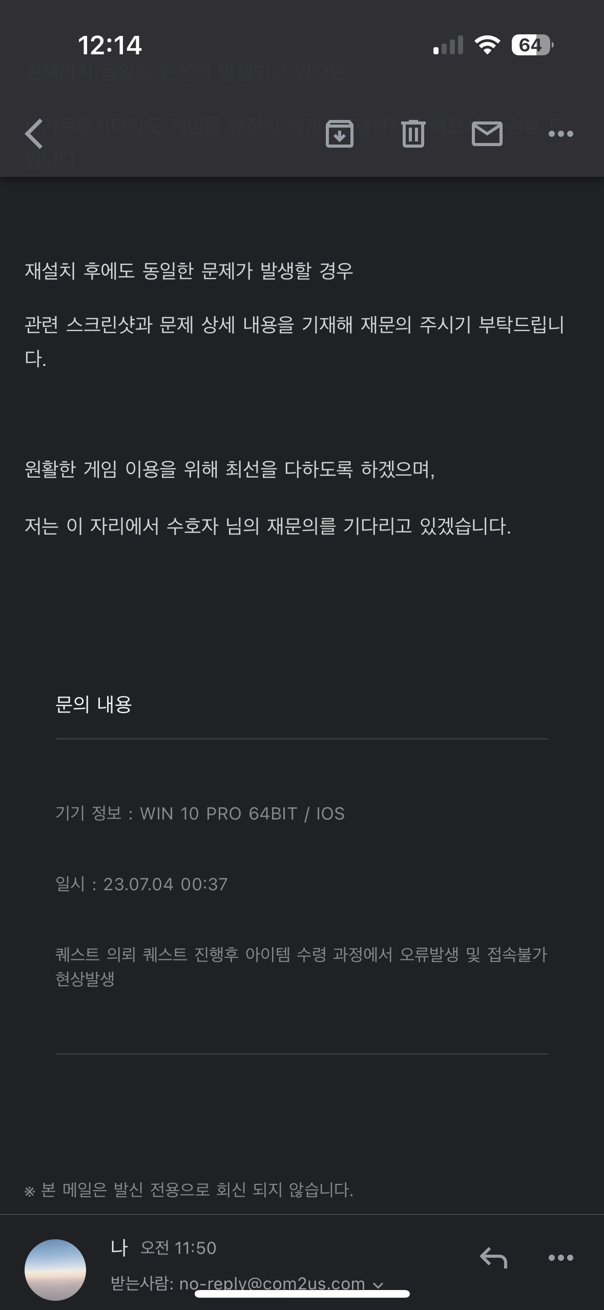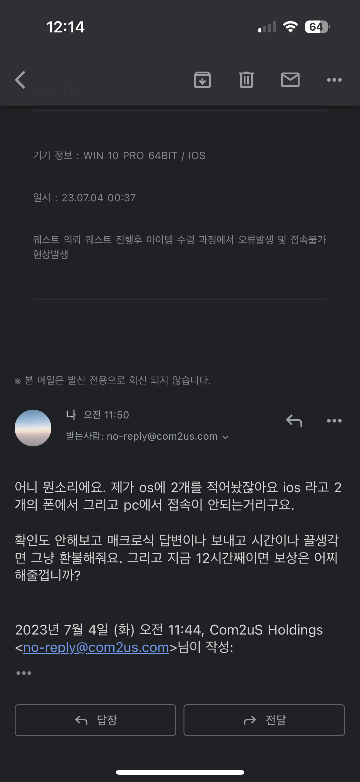 내계정 로그를 한번이라도 봤으면 이런 문의가 안와야하는게 정상인데 ㅋㅋ 진짜 답변 수준하고는