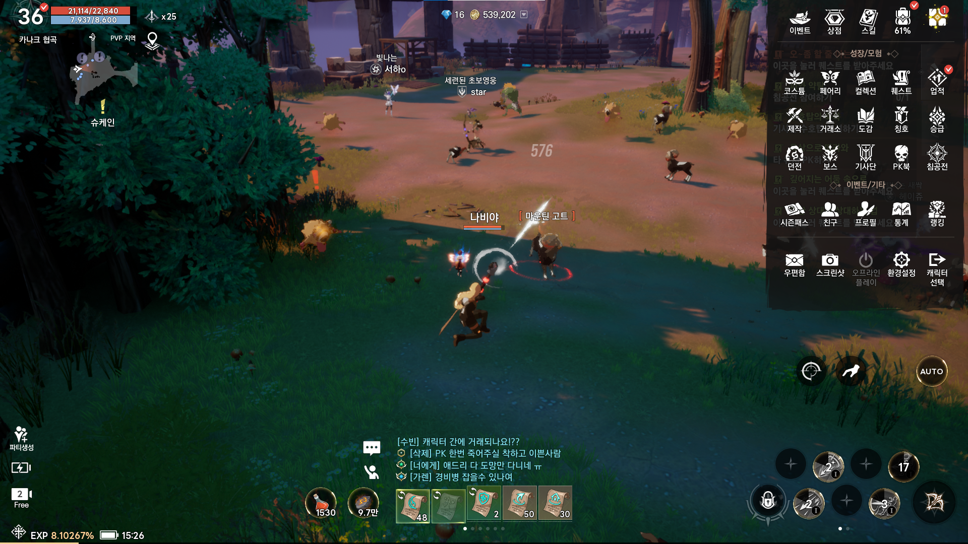 난 36레벨 방금 업해버렸다.