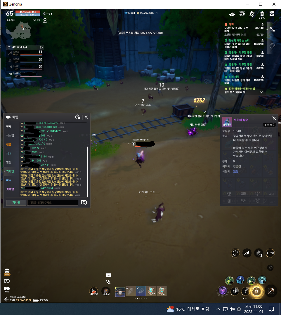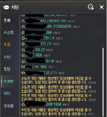 보듯이 항상 파티해서 사냥하고 나 혼자 기사단 쓰다보니 정수파밍, 골드파밍, 알 파밍 같은거 할때 기사단 채팅을 노트 처럼 쓰거든?
