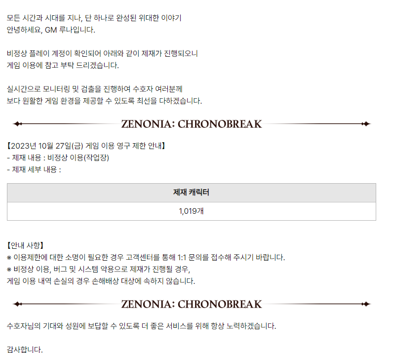 자유게시판 공략 게시판 기사단 홍보 이미지게시판 월드 게시판 건의 및 제보 이건 정상적인 뽑기라고 인정해도 문제인게 Ericrocidini8534 2023-11-04 04:15 0 480 0 작업장 제재 하나도 안했다는걸 인증하는거라 아래 공지 구라인거 인정하는 셈 글삭제하면 도배한다. 0 0 댓글 0 더보기 목록 이전 작업장 합성이라고 하기엔 유니크3번 한번에 돌리는게 말이되나 다음 이거 겜 망한거같은데??? 이거 어캐 해결함?? 해결 가능은함??