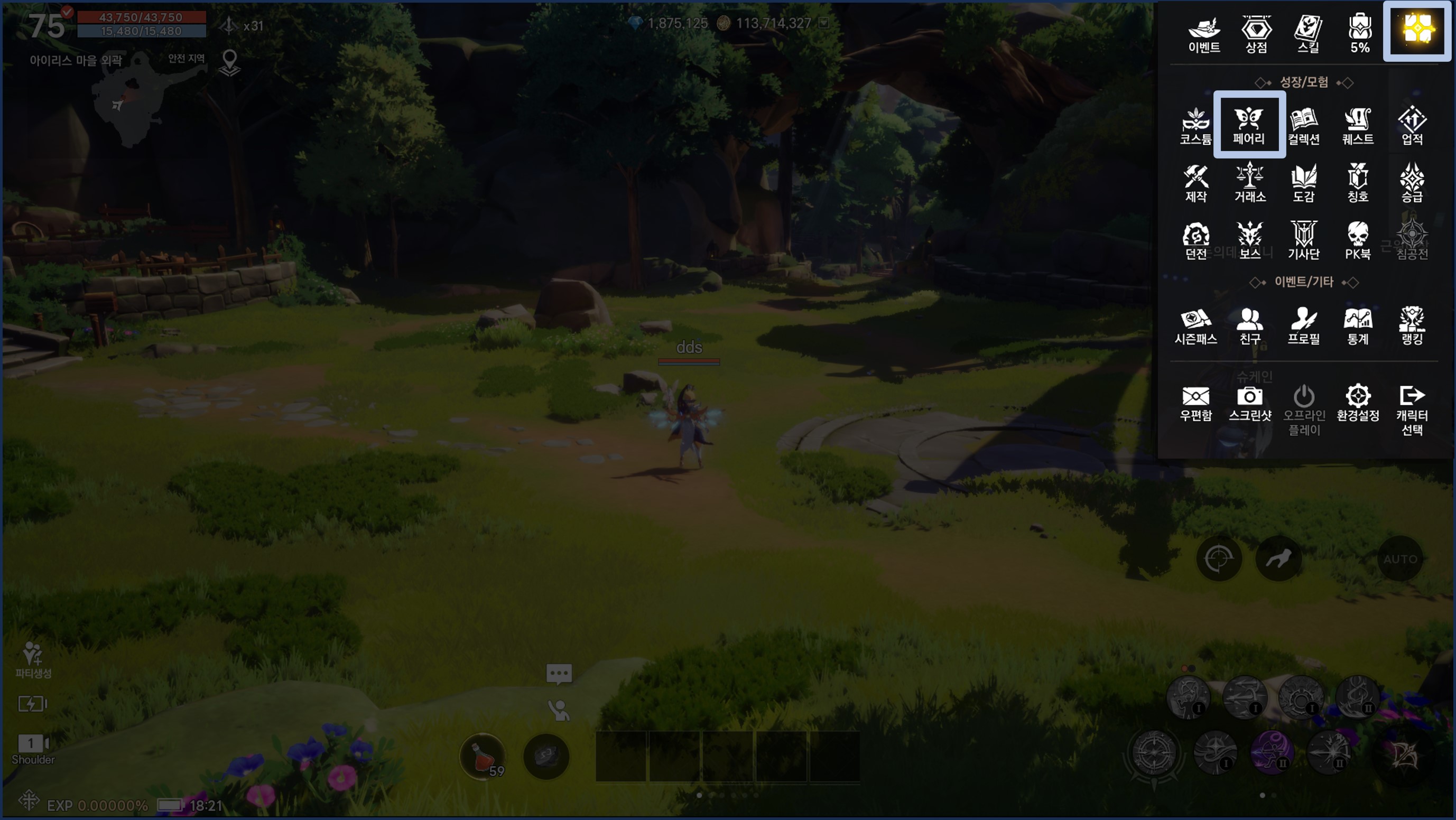 - 화면 우측 상단의 메뉴 - '페어리'을 차례대로 눌러주세요.