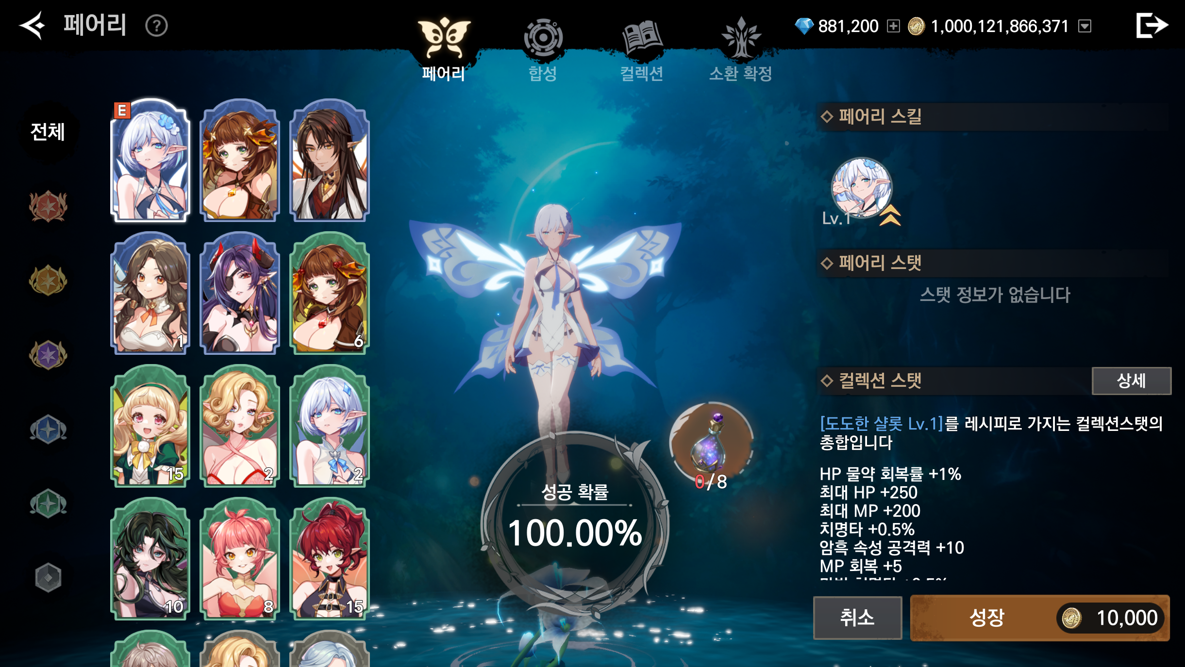 - 동일 등급의 페어리끼리만 합성이 가능합니다.