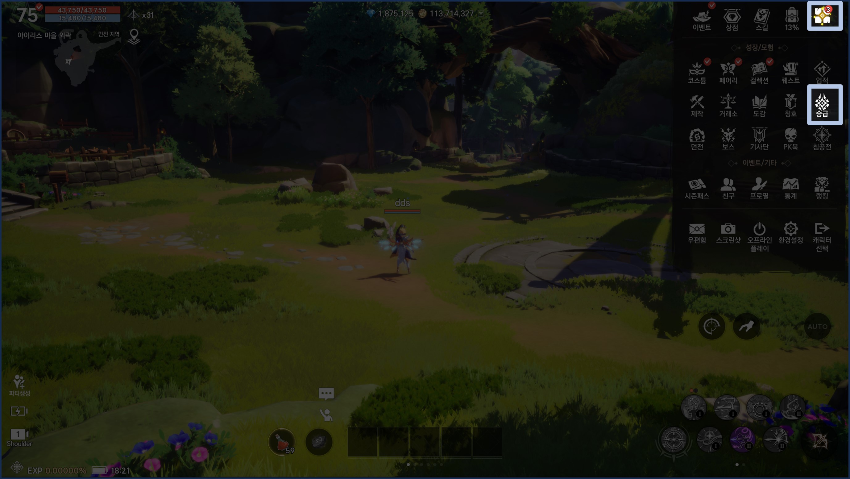 - 승급은 캐릭터 20레벨 달성 시 오픈됩니다.