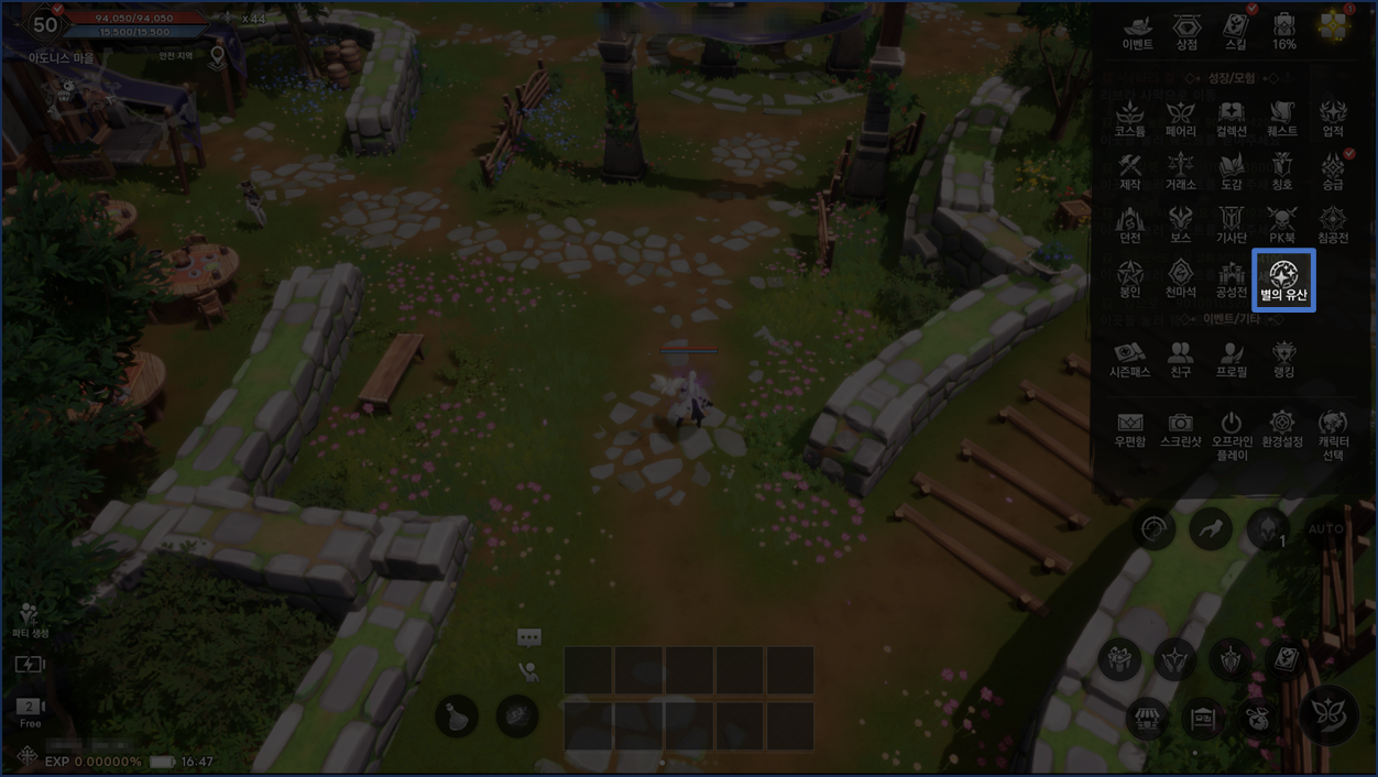 - 별의 유산은 캐릭터 50레벨 달성 시 오픈됩니다.
