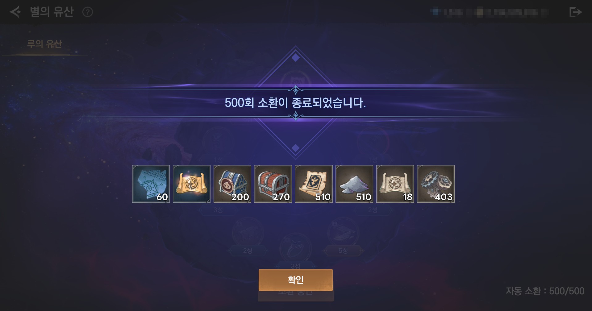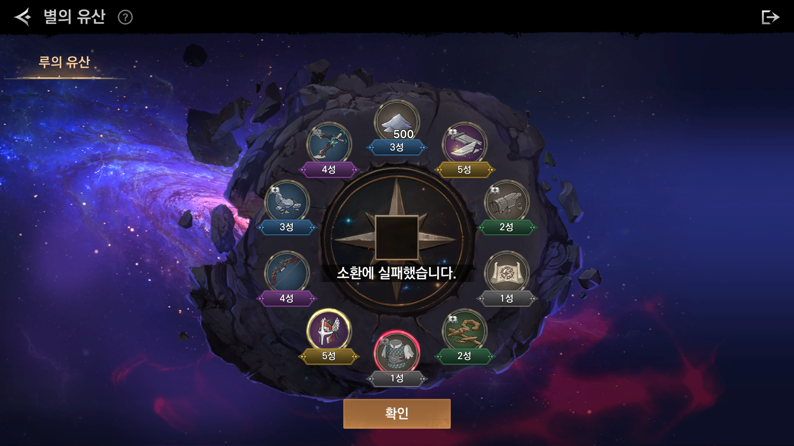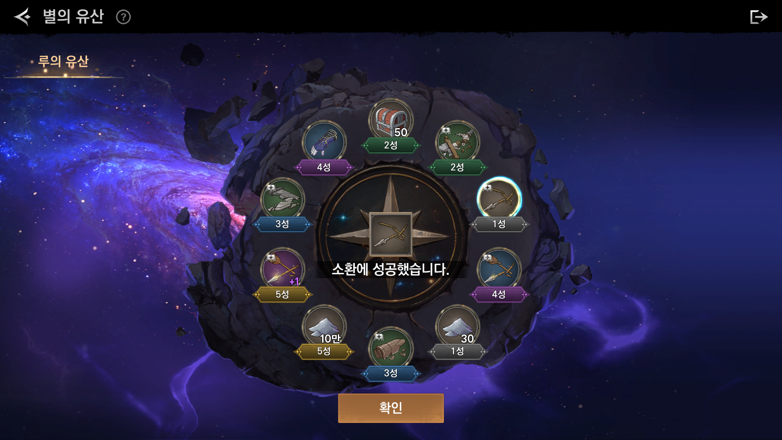 별의 유산 소환 결과