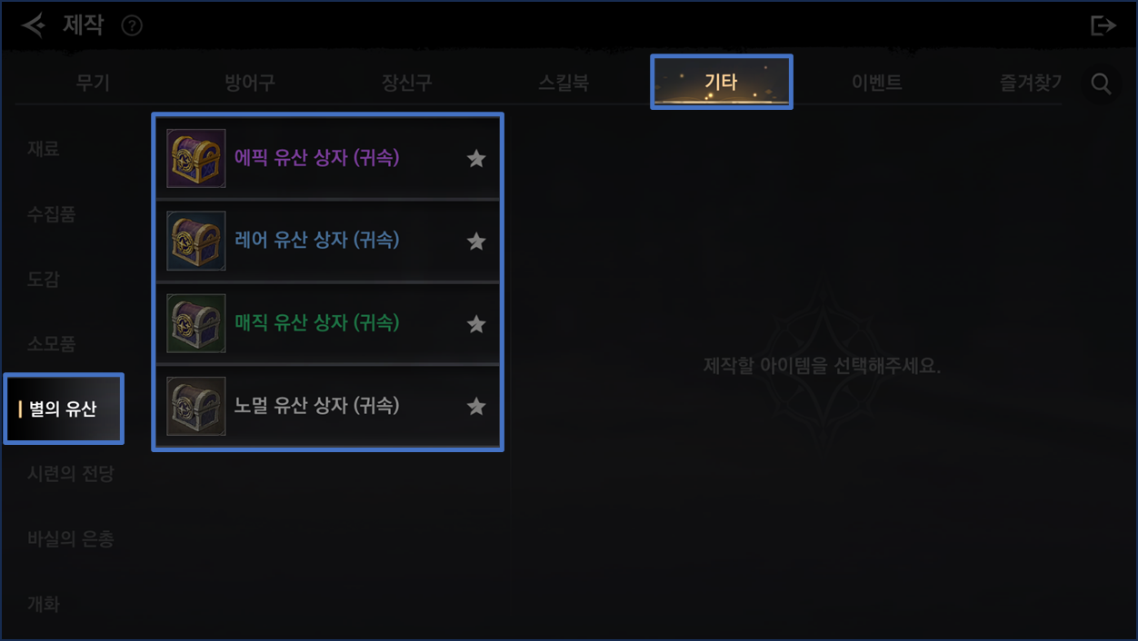 - 유산 아이템은 제작을 통해서도 획득할 수 있습니다.