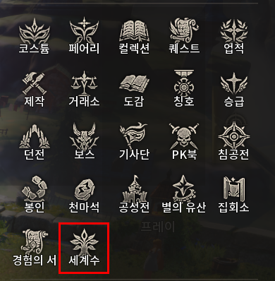 - 화면 우측 상단의 메뉴 - 세계수를 차례로 눌러주세요.