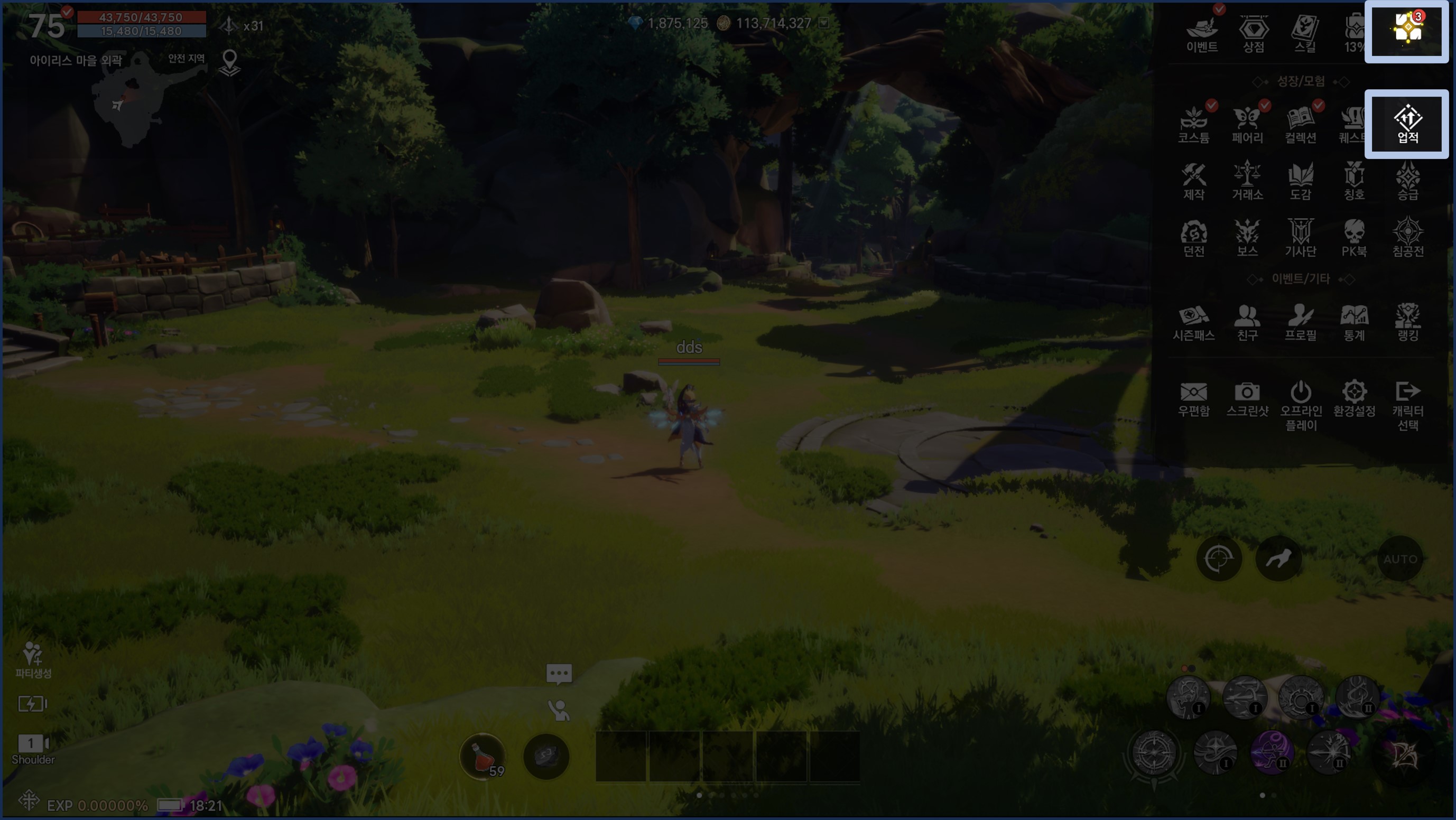 - 화면 우측 상단의 메뉴 - '업적'을 차례대로 눌러주세요.