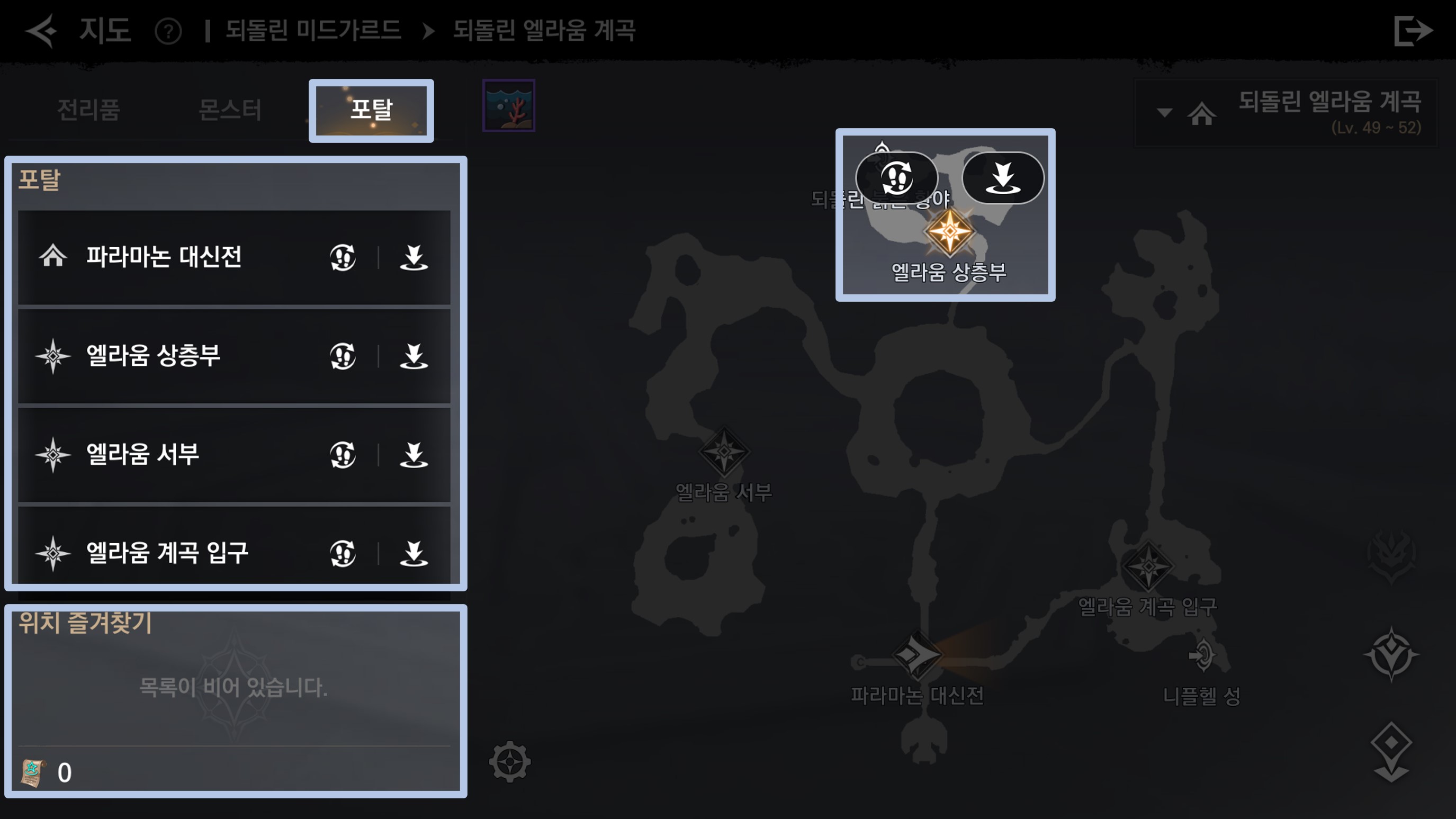 - 원하는 포탈을 선택 후 해당 지역으로 즉시 이동할 수 있습니다.