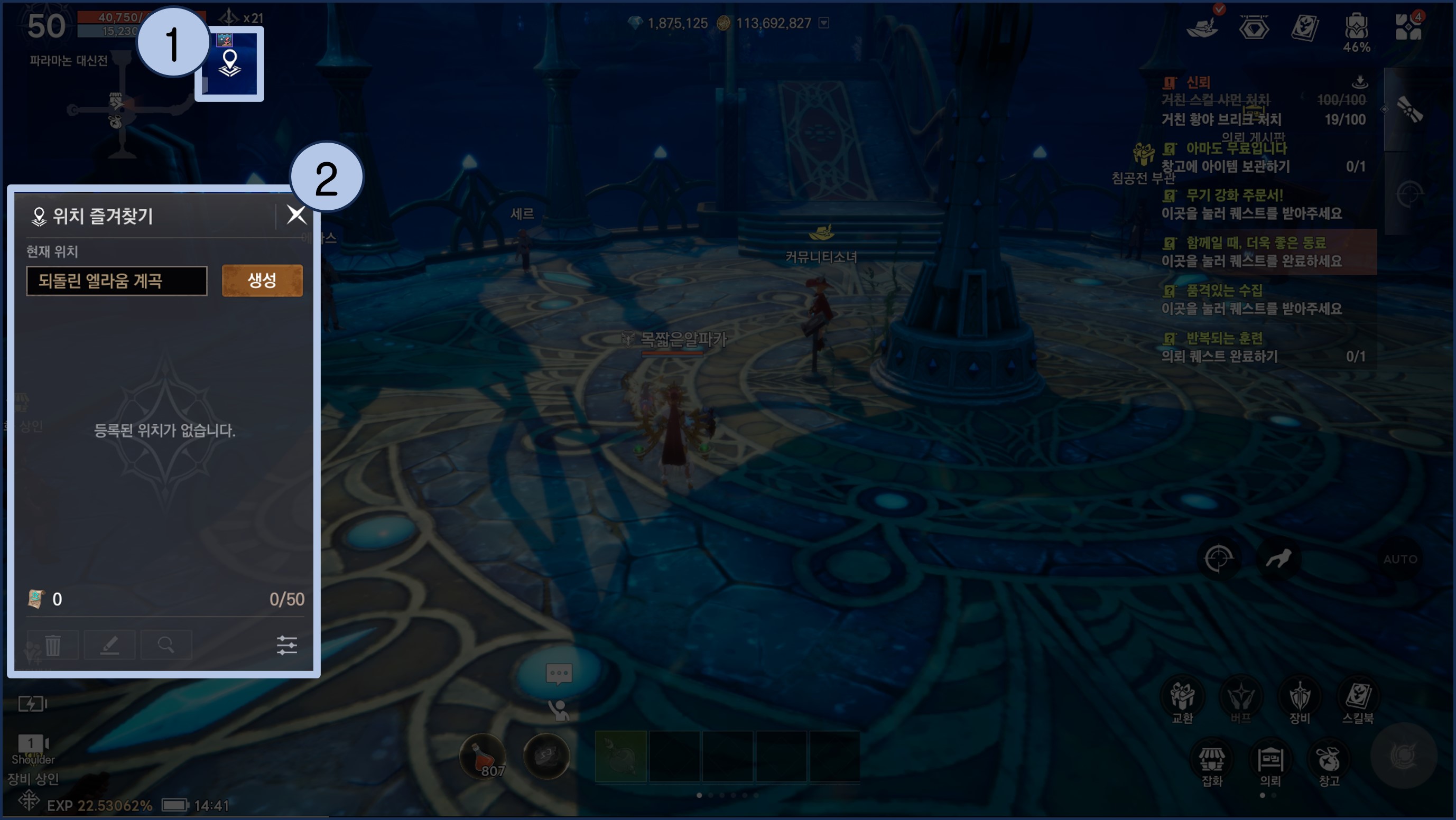 - 화면 좌측 상단의 '미니맵'을 눌러주세요.