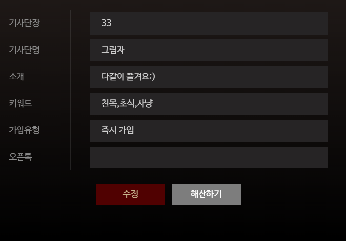 자유게시판 공략 게시판 기사단 홍보 이미지게시판 월드 게시판 건의 및 제보 [아이리스1]그림자 길드원 모집합니다!! Meliponini1107 2023-05-19 17:44 1 5 0 아이리스1 그림자 길드원 모집합니다!! 소통하면서 재미있게 같이합시다:D 1 0 댓글 0 더보기 목록 이전 ★노브랜드 ★길드 아이리스3 친구모집 합니다~ 다음 [안티온3] 초심
