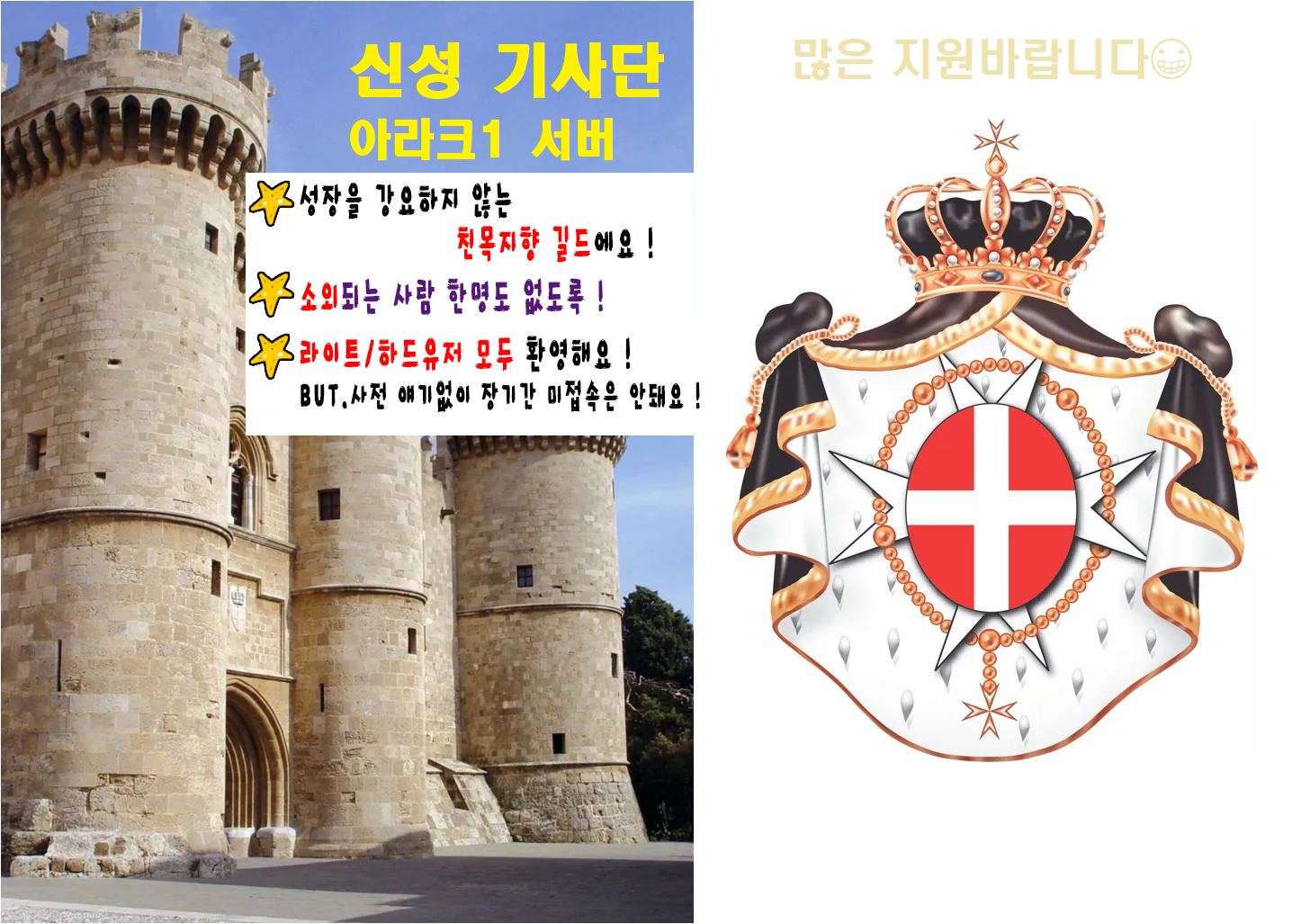 신성 기사단에서 여러 정보 공유와 더불어서 함께 대화하고 소통하면서 함께 제노니아를 즐기실 단원분들을 모집합니다.