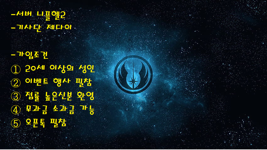 자유게시판 공략 게시판 기사단 홍보 이미지게시판 월드 게시판 건의 및 제보 니플헬2 [제다이]기사단에서 인원 모집합니다.[현재 모집인원 3/30] 포스 2023-05-25 22:46 0 7 0 오픈톡: https://open.kakao.com/o/g5z3NQlf 0 0 댓글 0 더보기 목록 이전 [이벤트] [안티온2]❤️별빛 기사단원 모집합니다❤️ 다음 ????️[아이리스2]?여수밤바다 길드원 모집중??