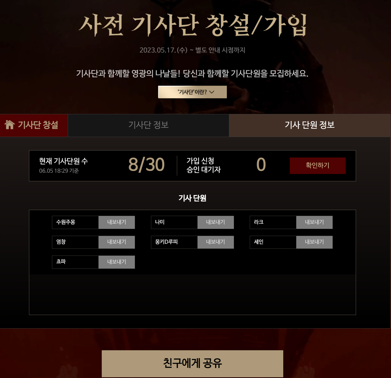 자유게시판 공략 게시판 기사단 홍보 이미지게시판 월드 게시판 건의 및 제보 카엘 2서버 원피스 기사단 현재 9명 오픈챗 필수 오하라의의지 2023-06-05 18:30 0 149 0 저와 동료가 될 분!! 0 0 댓글 0 더보기 목록 이전 카엘4 신화기사단 다음 1순위 기사단 오세요.