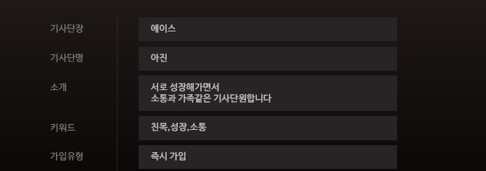 가족처럼 또는 친구처럼 서로 도우며 성장해 가는 기사단 원합니다