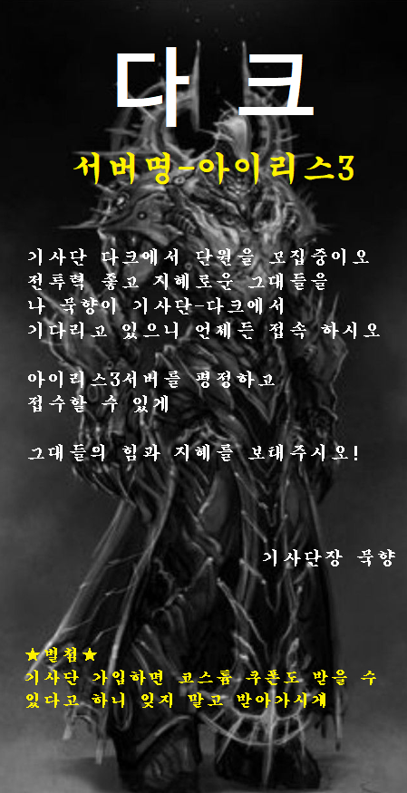 자유게시판 공략 게시판 기사단 홍보 이미지게시판 월드 게시판 건의 및 제보 [모여라] ● 아이리스3서버 ● 평정할 [[ 다크 ]]에서 단원 모집 中 묵향 2023-06-14 12:48 0 132 0 0 0 댓글 0 더보기 목록 이전 카엘 1서버 잡초 기사단 모집합니다 다음 리그릿4 ⭐️단결⭐️ 기사단 홍보(14/30)