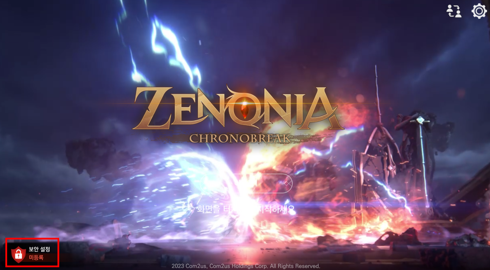 1. 제노니아 접속 후 메인 화면 좌측 하단 보안 설정 아이콘을 터치해 주세요.