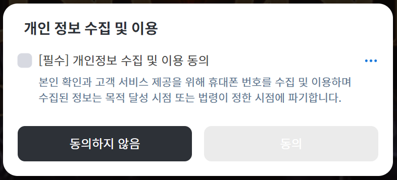 *타인의 휴대폰 번호를 이용한 인증 진행으로 문제 발생 시에는 도움을 드릴 수 없으니 반드시 본인 명의의 휴대폰으로 인증을 부탁드립니다.