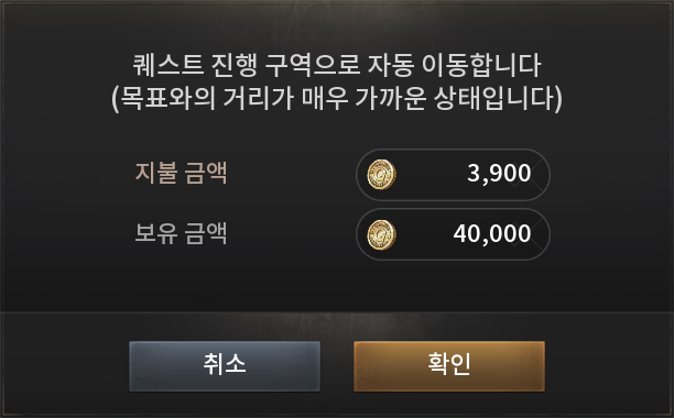 ● 퀘스트 UI 내 텔레포트 버튼 클릭 시, 퀘스트 목표가 가까운 경우 팝업에 안내 문구가 출력되도록 개선됩니다.