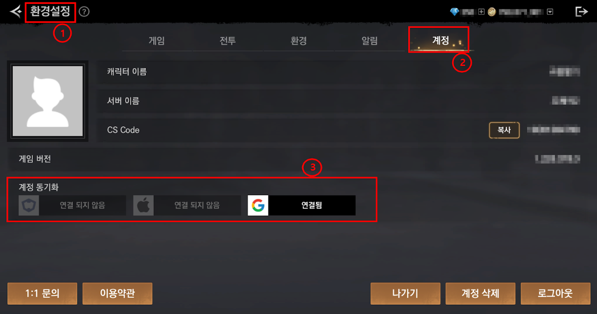 - 경로: 게임 내 [환경 설정] → [계정] → [계정 동기화]