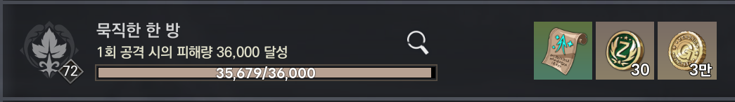 [묵직한 한 방]이란 업적을 달성해서 젠을 모을 수 있다구~