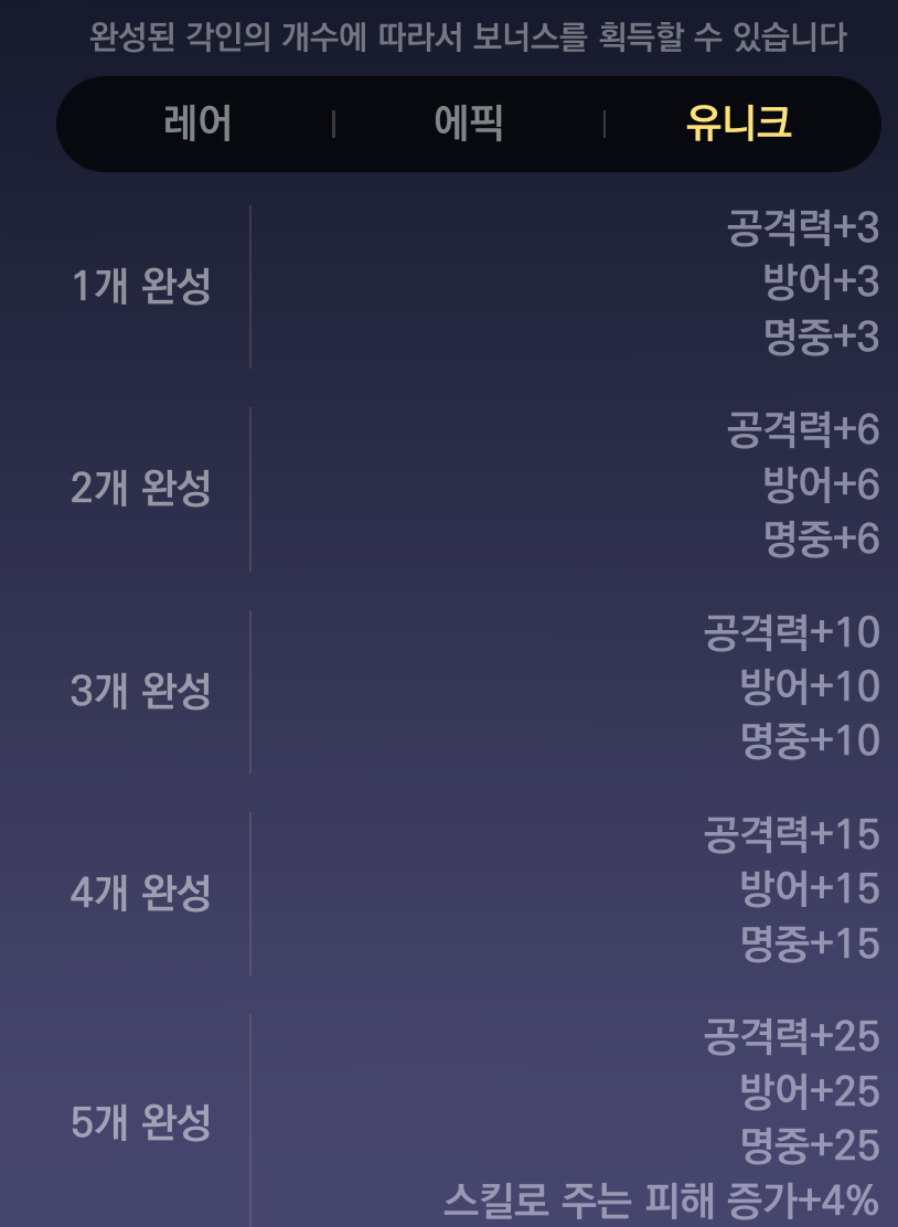 각인석이 부족해서 유효옵을 뽑기 힘드신 분들은 첫번째 봉인 lv4에 명중 8이 붙어있으므로