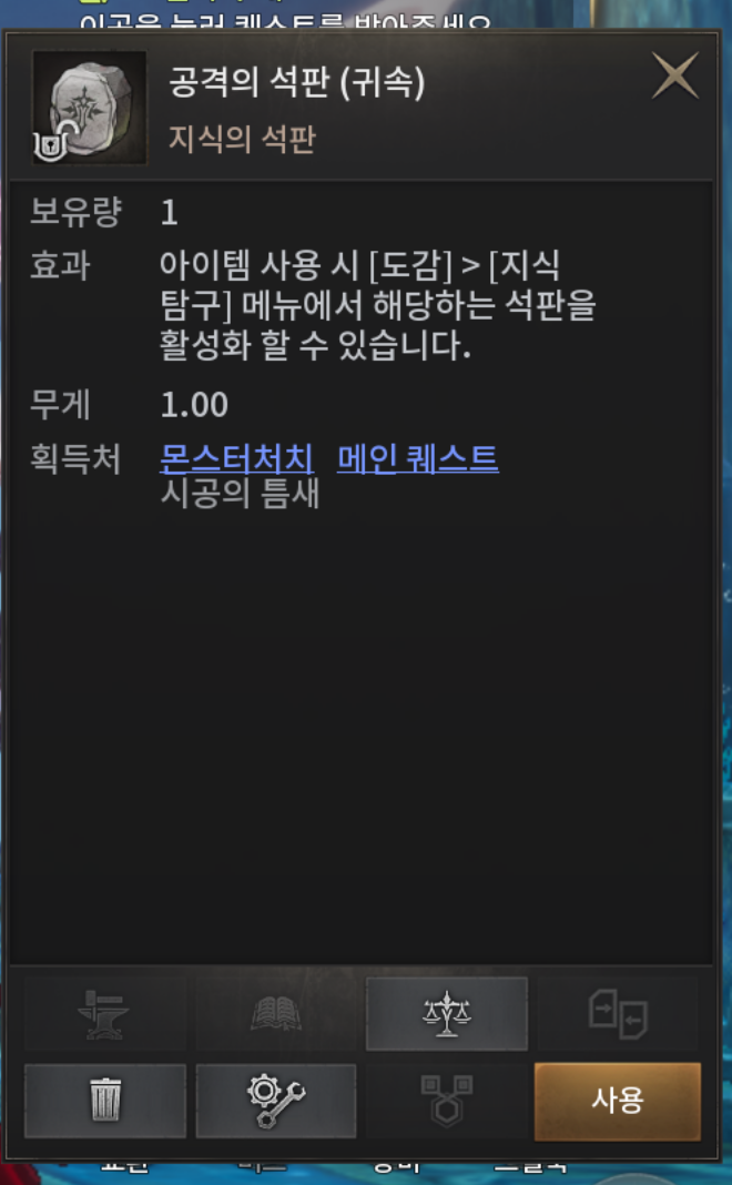 이 석판조각으로 확률적으로 능력치를 얻을 수 있거나 상위등급의 석판을 제작가능합니다.