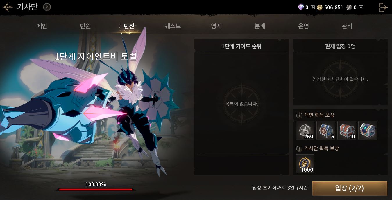 기사단 주화는 출석,기부,기사단 퀘스트-기사단 던전을 통해 획득 가능합니다.