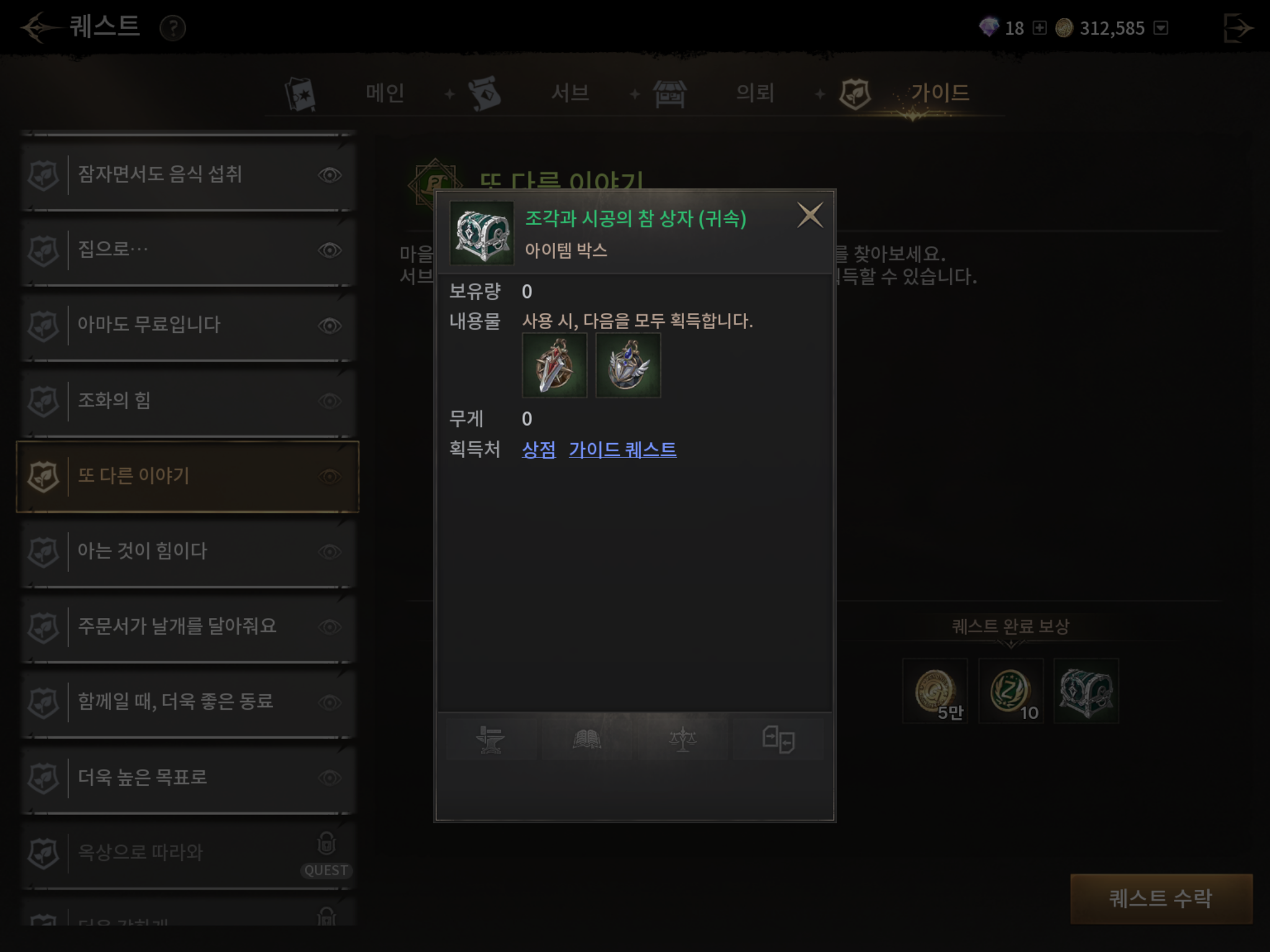 참고로 젠상점에 이것을 파는데 젠이 아쉽기 떄문에 퀘스트-가이드에서 또다른 이야기 퀘스트를 수락후