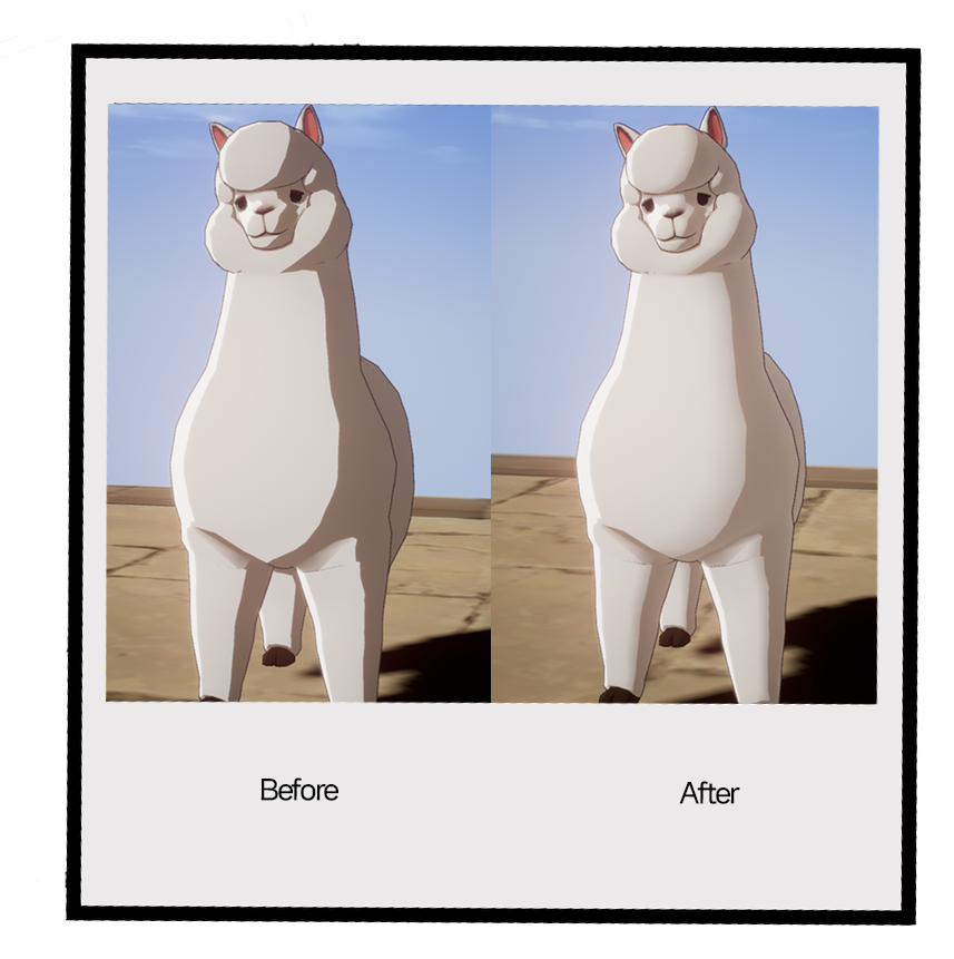 혹시나 해서 알파카로 비교하니 기존 보다 좀 더 부드러워보이도록 그래픽 효과가 개선되어