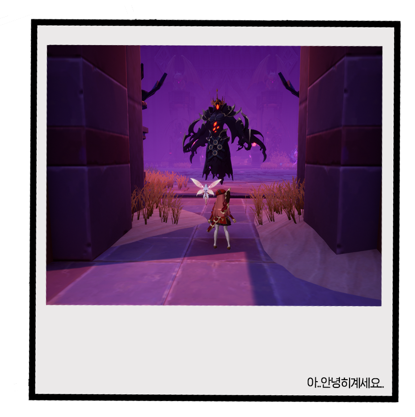 라카 폐허 깊숙한 곳에서 보스를 찾았어요..! 뭔가 사신 처럼 생긴게..