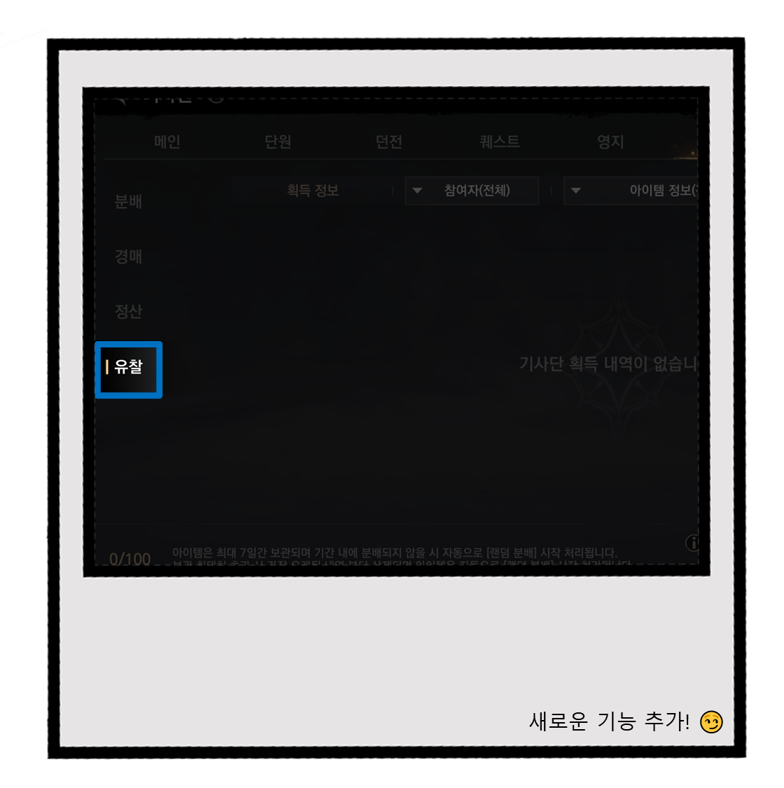 기사단 유찰 탭, 랜덤 분배기능, 경매 즐겨찾기 기능이