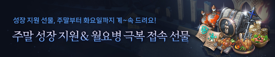 - 이벤트 보상은 서버당 1회 수령할 수 있습니다. (기존 : 계정당 1회 > 수정 후 : 서버당 1회)