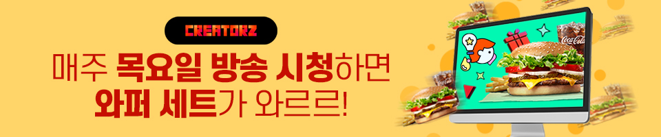 방송 중이신 크리에이터님의 구독자분들께는 총 400개 와퍼세트를 선물로 드립니다!