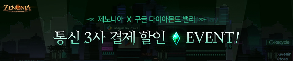 구글 플레이 다이아몬드 밸리에서 제노니아 상품 결제 시 할인 혜택을 드리는이벤트가 진행됩니다.