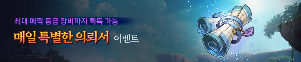 - 이벤트 기간 동안 [상점] > [교환소] > [이벤트] 탭에서 '특별한 장비 의뢰서'를 구매하여 이벤트 의뢰를 진행 하실 수 있습니다.