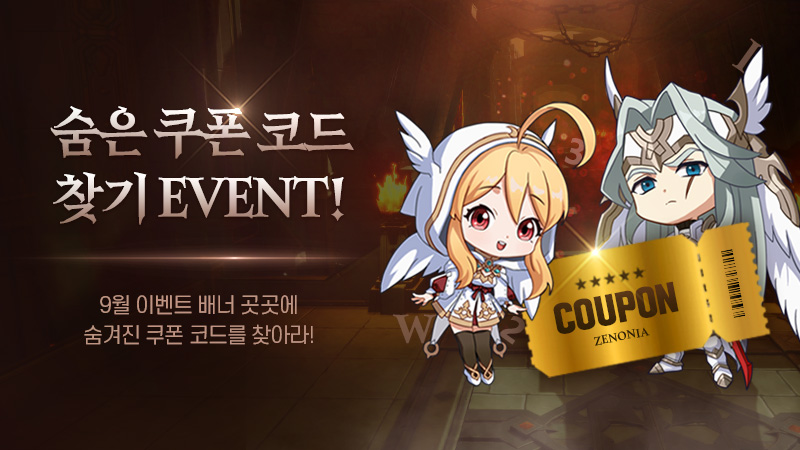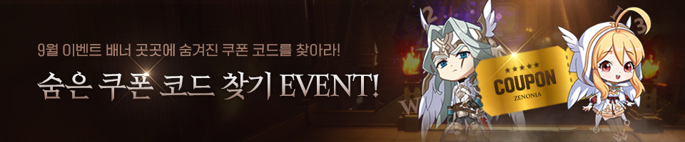 1) 9월 이벤트 공지에서 배너를 확인하여 흩어져있는 쿠폰 코드를 찾아주세요.