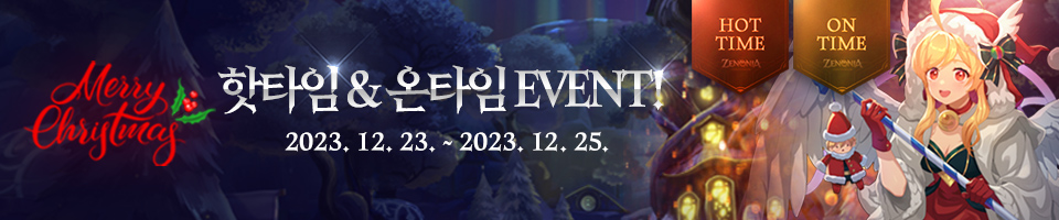 수호자님들과 함께 보내는 제노니아의 첫 크리스마스를 기념하여 핫타임&온타임 이벤트를 준비했어요!