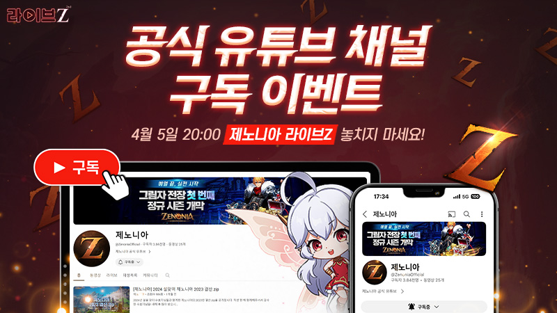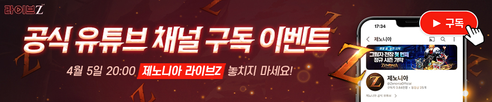 더욱 많은 수호자님들과 함께 라이브Z를 즐기기 위해 유튜브 구독 이벤트를 준비했습니다!