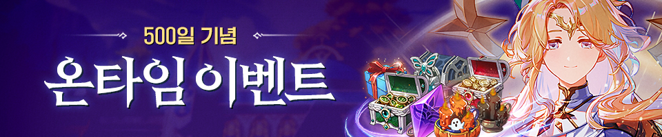- 이벤트로 지급되는 소환권 아이템은 '500일 기념 온타임 이벤트' 공지 이전까지 생성된 계정에 한하여 지급됩니다.
